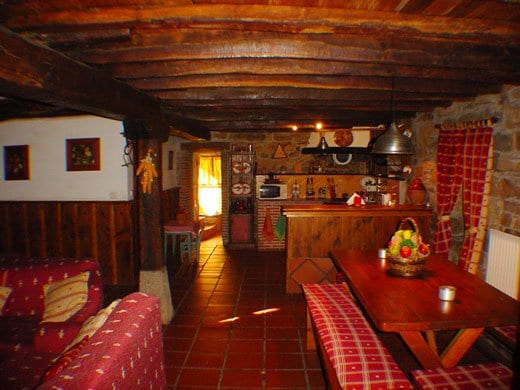 Equipada de todas las comodidades de la vida moderna. Dispone de: cocina con vajilla y electrodomésticos (vitrocerámica, frigorífico, horno microondas, etc), salón - comedor con chimenea de leña, TV, antena parabólica y equipo de música, 2 baños completos y 3 habitaciones, más un abuhardillado con dos camas.